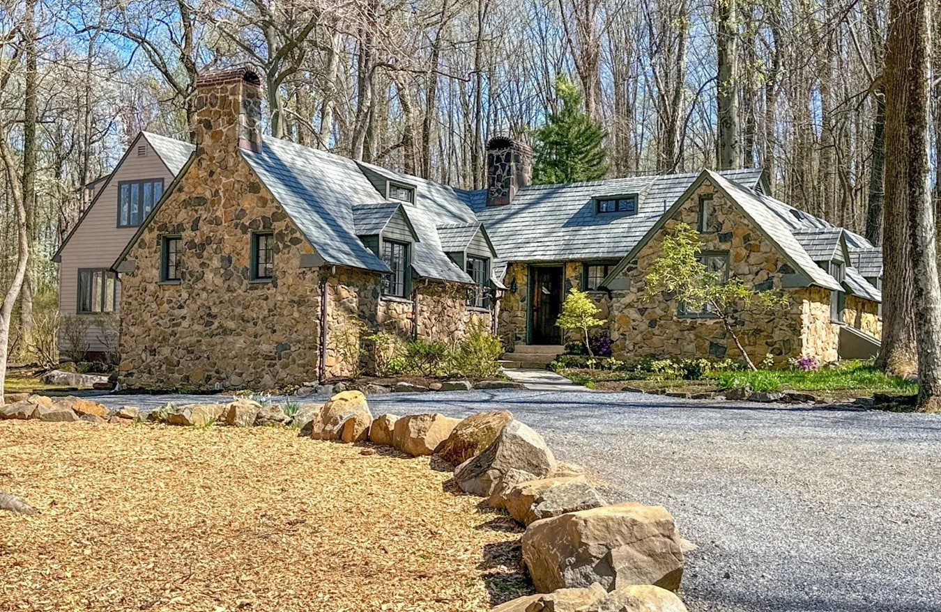 This positively enchanting stone home has been lightened, brightened and beautifully modernized! Thankfully, 1920s features, like solid wood doors, brick floors and metal casement windows, were preserved and enhanced during the careful renovation. Peaked ceilings with exposed beams now feel even loftier and the living room’s grand stone fireplace commands attention against clean white walls. Antique doors were specially sourced for a much-needed coat closet added to the foyer, further evidence of thoughtful attention to detail. Serving today’s lifestyle, the breakfast room is now open to the stunning new kitchen with quartz countertops, sleek appliances and a wet bar alcove. An adjoining sunroom revels in the woodsy setting with big windows framing natural boulders and verdant foliage, as well as doors opening to a new stone patio that invites relaxation amidst rustling leaves and birdsong. Continuing the home’s signature peaked ceilings, a flexible dining room also spills out to the patio. A pebble-tiled hall bath serves three first floor bedrooms, while the upper level is reserved solely for the primary suite. A soaking tub in the totally luxe primary bath basks in woodsy views and a stacked washer/dryer is hidden beside a walk-in closet. The tiled basement has a second laundry area, as well as a wine room. With a state of the art new septic system and a fully renovated apartment above the garage, complete with a marble bath and quartz and stainless steel kitchen, you can invite guests to escape the hustle and bustle for as long as they’d like! This nestled-in-the-woods hideaway offers seclusion on 5.62 acres without sacrificing convenience, as Princeton's renowned schools and busy downtown are all surprisingly less than 3 miles away.
