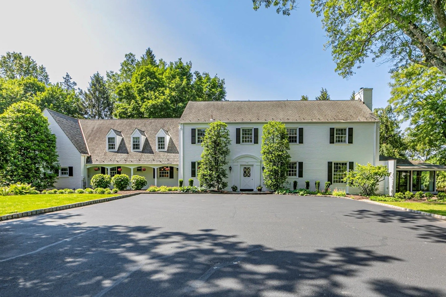 This elegant white brick home, cherished by the same family for over five decades, is situated just a mile from The Lawrenceville School and the restaurants of charming Main Street within the Long Acres enclave. These quiet streets dotted with majestic trees have easy access to I-295, yet the leafy setting is positively idyllic. A sunken bluestone patio, an intimate brick patio and a solarium all bask in the setting. A marble-floored foyer gives way to grandly proportioned rooms with high ceilings and details that you just don’t find in newer homes, including deep crown molding, charming niches and five fireplaces. The richly paneled living room is the go-to locale for evening entertaining, while the adjoining sunroom, wrapped in floor-to-ceiling windows and burnished wood, is magical in the winter and cool in the summer. The large family room and adjoining dining room, complete with a built-in bar, are the light-filled heart of the home. The kitchen offers modern stainless steel appliances and durable granite countertops. With an office and laundry room both adjoining, this wing of the house is a modern multi-tasker’s dream. Upstairs, four full baths sporting timeless white tile serve five bedrooms, including a two-room apartment-style suite atop the back staircase offering extra privacy for holiday guests or sleepovers. The spacious primary suite is heavenly with a fireplace and three walk-in closets. Storage throughout is plentiful, a rare perk in a period home. Don’t skip the basement! With brick flooring and real wood paneling, the game room has a pub-style atmosphere that pleases fun-loving guests of all ages.