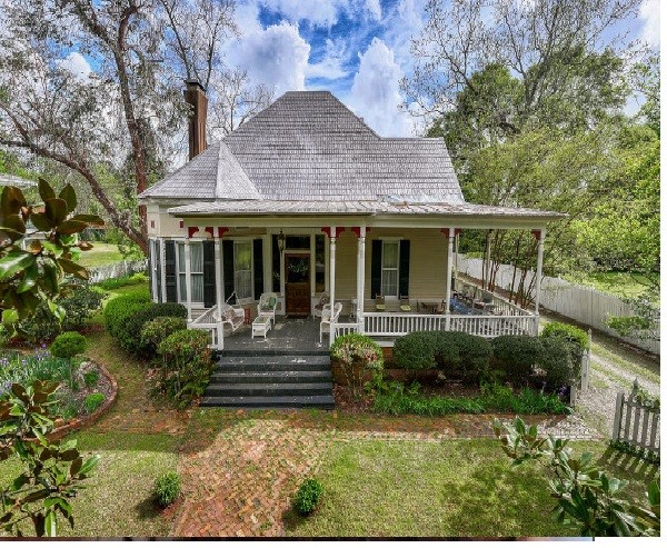 Guarded and shielded from the street by a pair of 150 year old towering magnolias, this 2 BR, 2 Bath 2,683 SF cottage is within walking distance of the historic Town Square and near perfect for in-town luxury living with gracious verandas wrapping the front and west side along with a jasmine covered pergola that extends the quaint breakfast porch on the east side. A large rear deck, with nearby converted gazebo grill house overlooks the large in-ground salt system pool (upgraded 2024) as verandas, porches and decks all flow effortlessly onto beautiful landscaped grounds with brick walkways, flower and herb gardens, shrubs, mature camellias, crepe myrtles, fig, eucalyptus and even a pecan tree. How more Southern can one get? There is also a detached two-car garage.