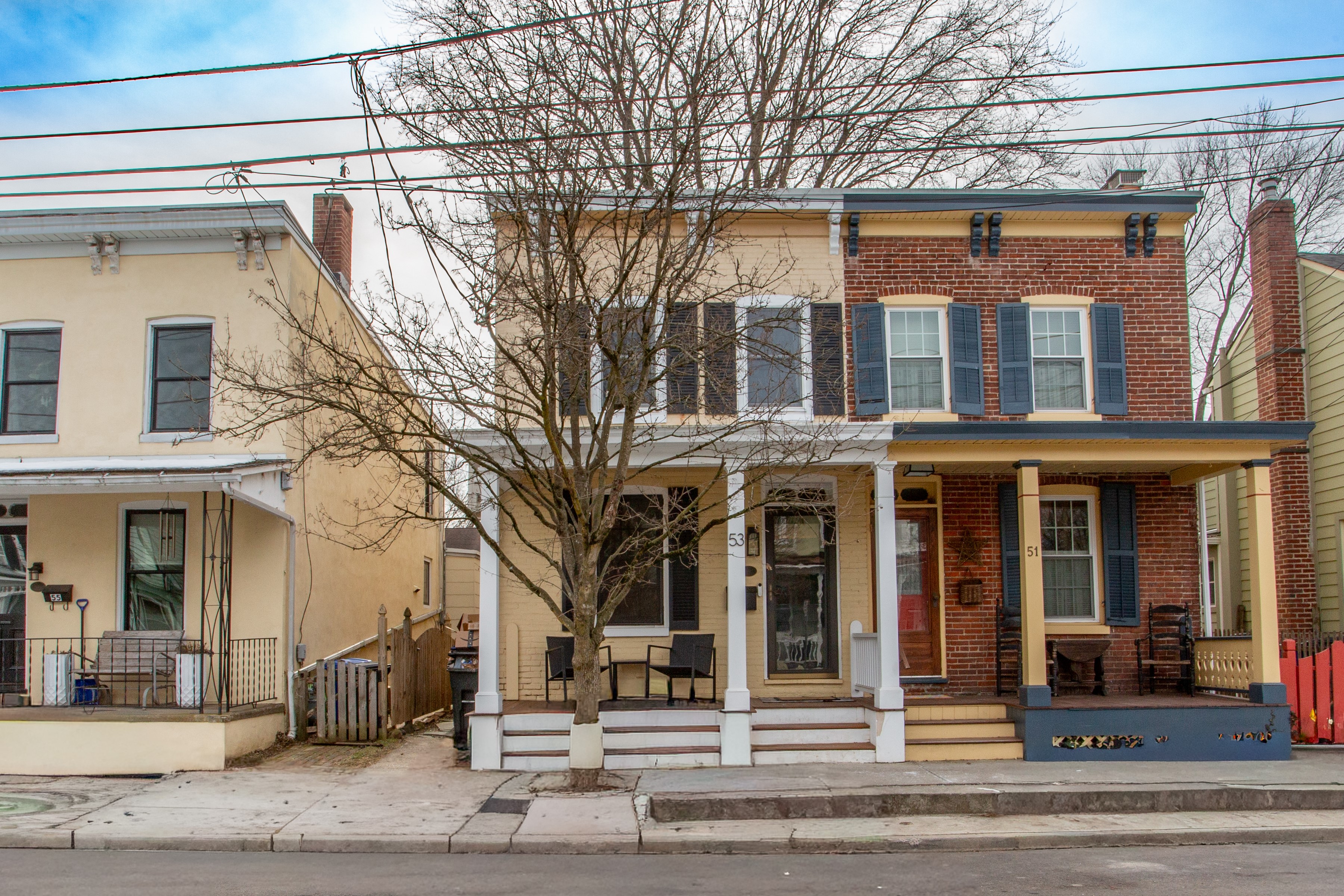 Set on a quiet side street in the historic river town of Lambertville, this beautifully updated home seamlessly blends period charm with today’s conveniences. Enjoy the bustle of town from the deep rocking chair front porch, the perfect place to chat with neighbors and watch the world go by. The glass-paned front door with transom window welcomes you inside where original pine floors, a fresh paint palette, and abundant natural light flow throughout. The bright and airy living room opens into a gorgeous eat-in kitchen featuring a live-edge wooden counter with seating, stainless steel appliances, granite counters, tile backslash, and farmhouse sink. A thoughtful addition provides a sunny dining room with reclaimed wood trim and stained-glass detail, and an adjacent powder room tucked behind a sliding barn door. Glass doors lead to a newly renovated stone courtyard with lovely storage shed. This fully enclosed area is perfect for dog lovers, and offers a great space for al fresco dining. The hardwood floors continue upstairs where three bright bedrooms share a lovely bathroom with skylight. The basement has laundry facilities and dry storage. Mini-splits throughout offer energy efficient heating and cooling.
