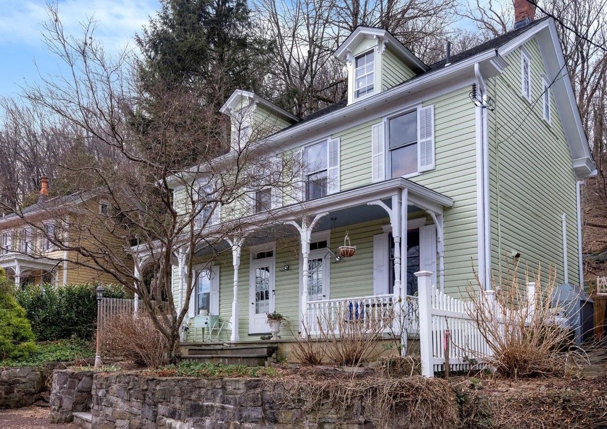 In historic Lumberville, one of Bucks County’s most enchanting river villages, this late-19th-century duplex offers an extraordinary opportunity to embrace the timeless beauty of life along the Delaware River. A gracious rocking-chair front porch welcomes you with tranquil river views, setting the tone for a home that feels like a year-round vacation home.