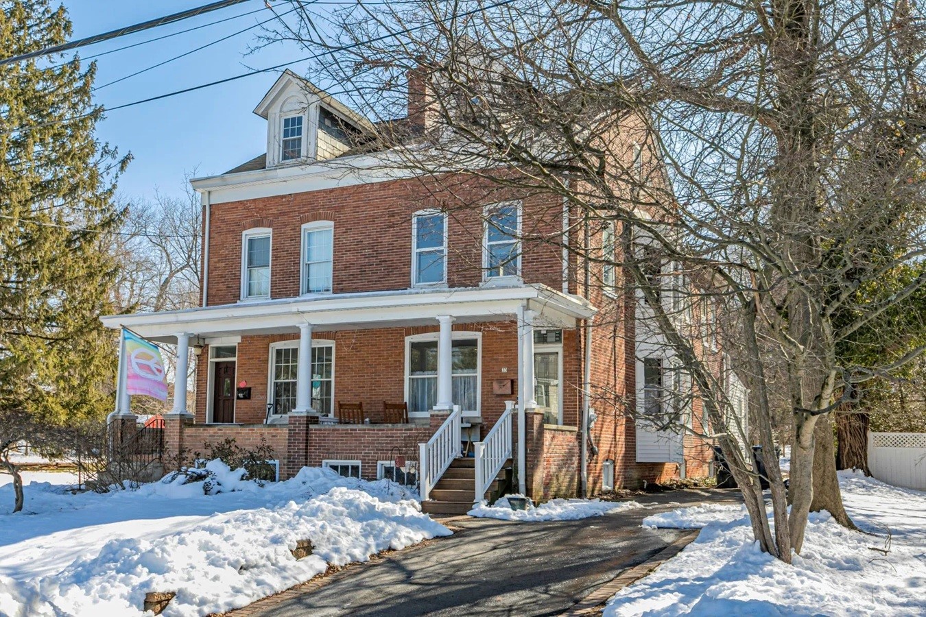 If you’ve been searching for a character-filled home near Princeton, this rare 1914 all-brick duplex deserves your attention! Built when homes were crafted to last, this solid charmer showcases the kind of details old-house lovers dream about, including stunning original American Chestnut woodwork framing the windows and doorways, beautiful pocket doors that glide between the living and family rooms, and hardwood floors spanning much of the first level.