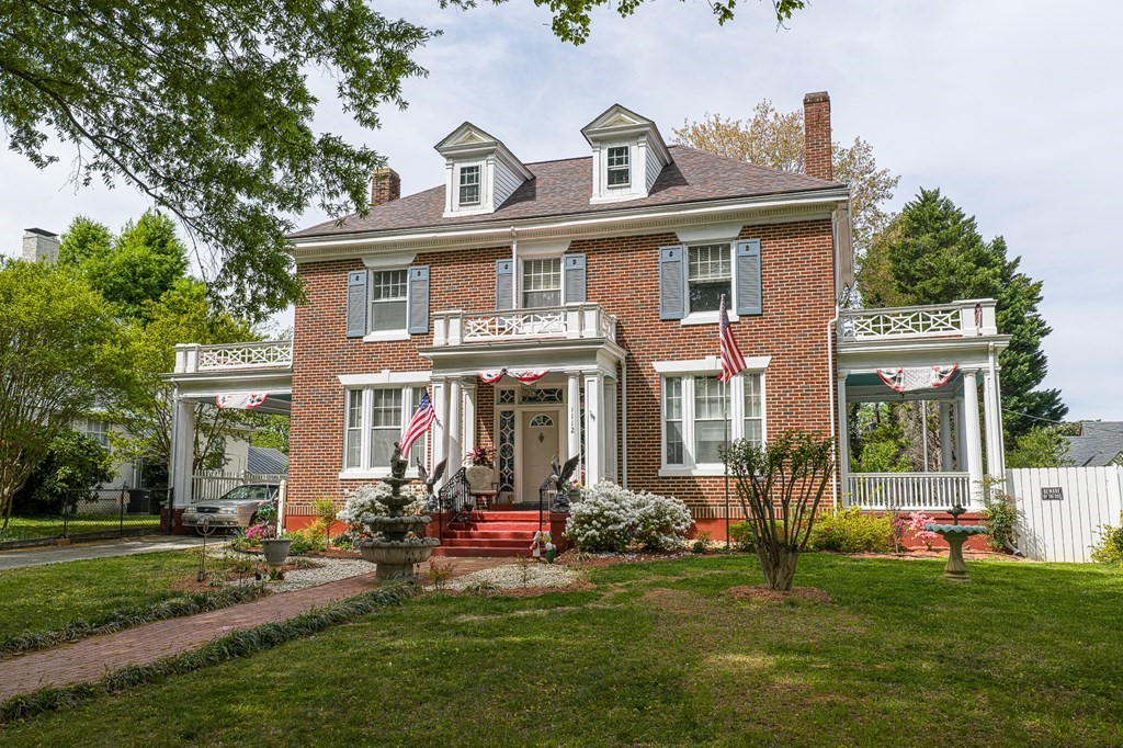 Grand, updated historic home featuring 4 bedrooms and 3 baths, conveniently located within walking distance to churches, library, shopping, restaurants, doctors' offices, spa, and downtown South Boston! This elegant home offers a beautiful foyer with a staircase, formal living with a fireplace and dining room, and a butler’s pantry/laundry. You will also find one of the two primary bedrooms with an en suite on the main level. Beautiful wood floors throughout and updated lighting and ceiling fans (2022). Upstairs, another primary bedroom, plus 2 additional bedrooms, and 2 bathrooms. Kitchen includes refrigerator, electric range, dishwasher, 2 sinks, and disposal; all curtains and blinds are included.